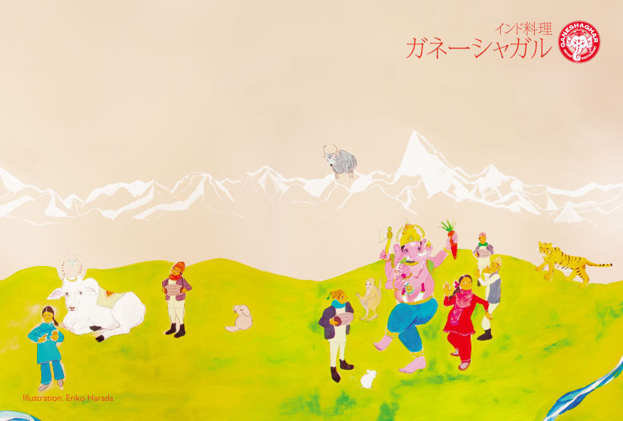 お気づきかもしれませんが、これはインドではなくネパールの風景。ガネーシャガルのスタッフは、インドのホテルやレストランでインド料理の修業をした陽気なネパール人(相撲好き)たち。雄大な故郷の風景が、そこから遠く離れた日本で働くスタッフさんたちの励みにもなってるんじゃないかな、と思います。