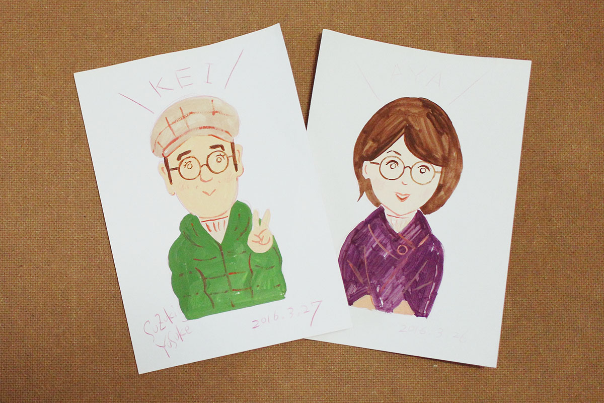 また、鈴木勇介さんとのコラボによる回文似顔絵もします。鈴木さんには、以前に冊子版「西荻式ダイエット」の時にイラストを書いてもらったことがあります。んでもって私たちも似顔絵を書いてもらったことがあります。