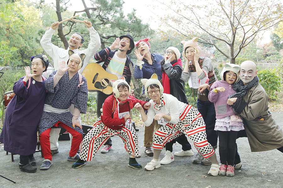 小春日和の善福寺公園に、踊りの輪ができ、ネコをかぶったオンドズ1号こと、橋本フサヨさんも大奮闘。「西荻案内音頭」「広尾町酪農音頭」「たがやせどじょうおじさん」の3曲を一気に踊り、まさしく大団円となりました。