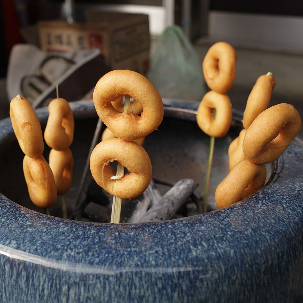 南佐渡で人気のドーナツ屋「タガヤス堂」さんが、炭火であぶった串ドーナツを売っていたりしていました。