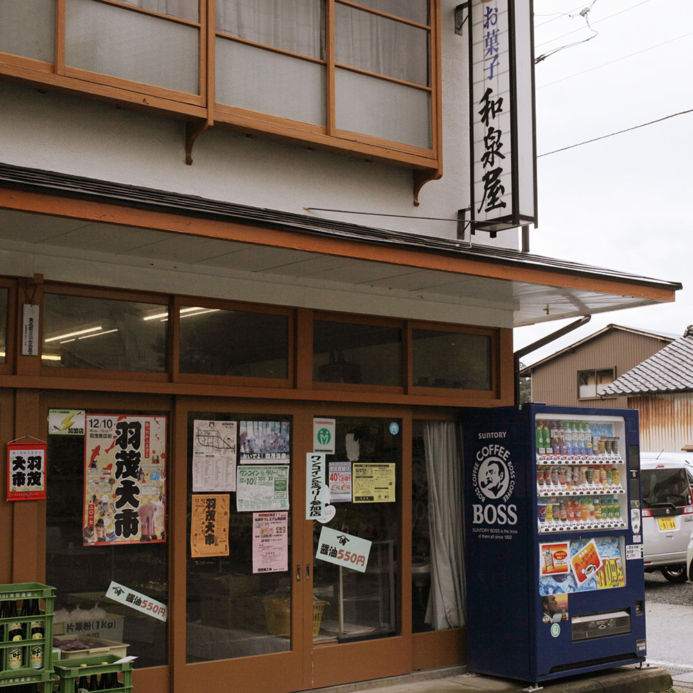 和泉屋さん、外から見る限り、いろいろ売ってます。どちらかというと和菓子屋のたたずまい。和菓子もあります。