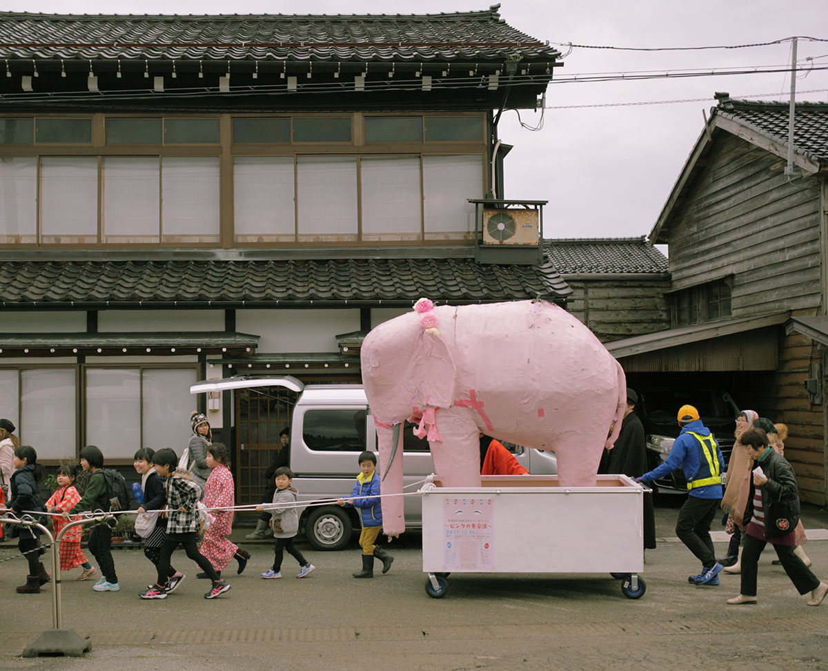 ハリボテのピンクの象が佐渡島・羽茂(はもち)の羽茂大市にて現地披露された、というのは先日の記事に書きました。