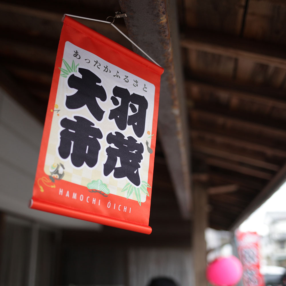 羽茂大市ではおじゃるずさんが大道芸をやっていたり、羽茂独特のわらじと絞張馬のついたしめ飾りを販売していたり。