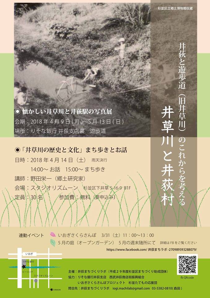 去る4月14日(土)、井荻まちづくりラボが主催する「井草川の歴史と文化」まち歩きとお話に参加するために、西武新宿線の井荻駅方面に行ってきました。