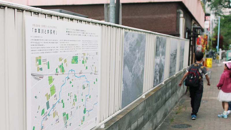 この分断をネガティブにとらえるか、それともなにか別のアイデアにつなげていくか。ちょっと特殊な街の事情を逆手に取るのも面白そう。そんなことをぼんやりと考えました。駅のすぐそばに井草川の遊歩道があって、そこでは5月13日まで「井草川と井荻村」写真展をやっています。