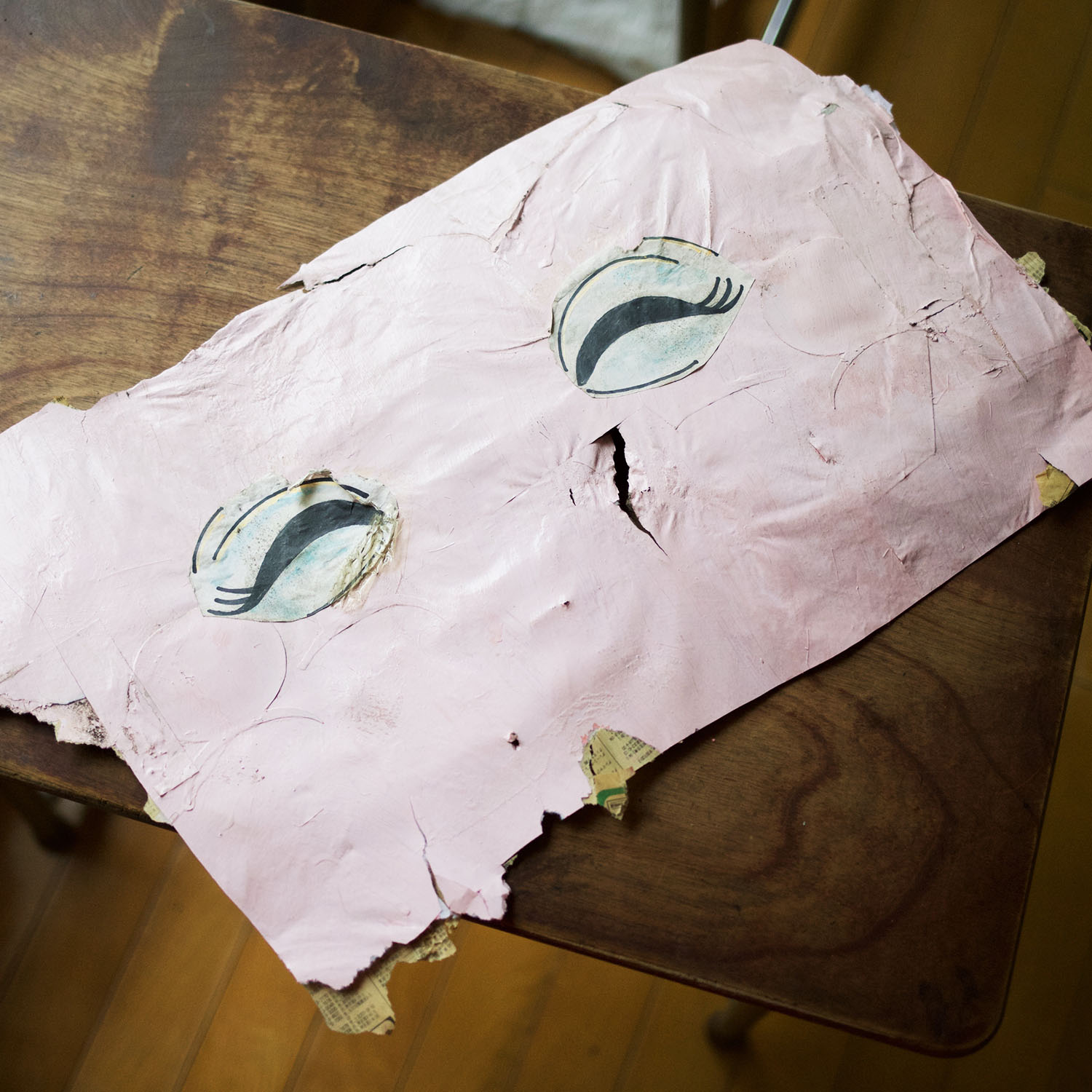 なんと、わずか8分ほどで紙がはがされてしまいました。始める前はちょっと湿らせてみようとか、対策を話し合っていたのですが。顔部分を残すために切り出している間に、他のパーツがほとんんどはがされ、撮影をする間もありませんでした。撮影したものを和久井さんが編集中なので、そちらを楽しみにしましょう。