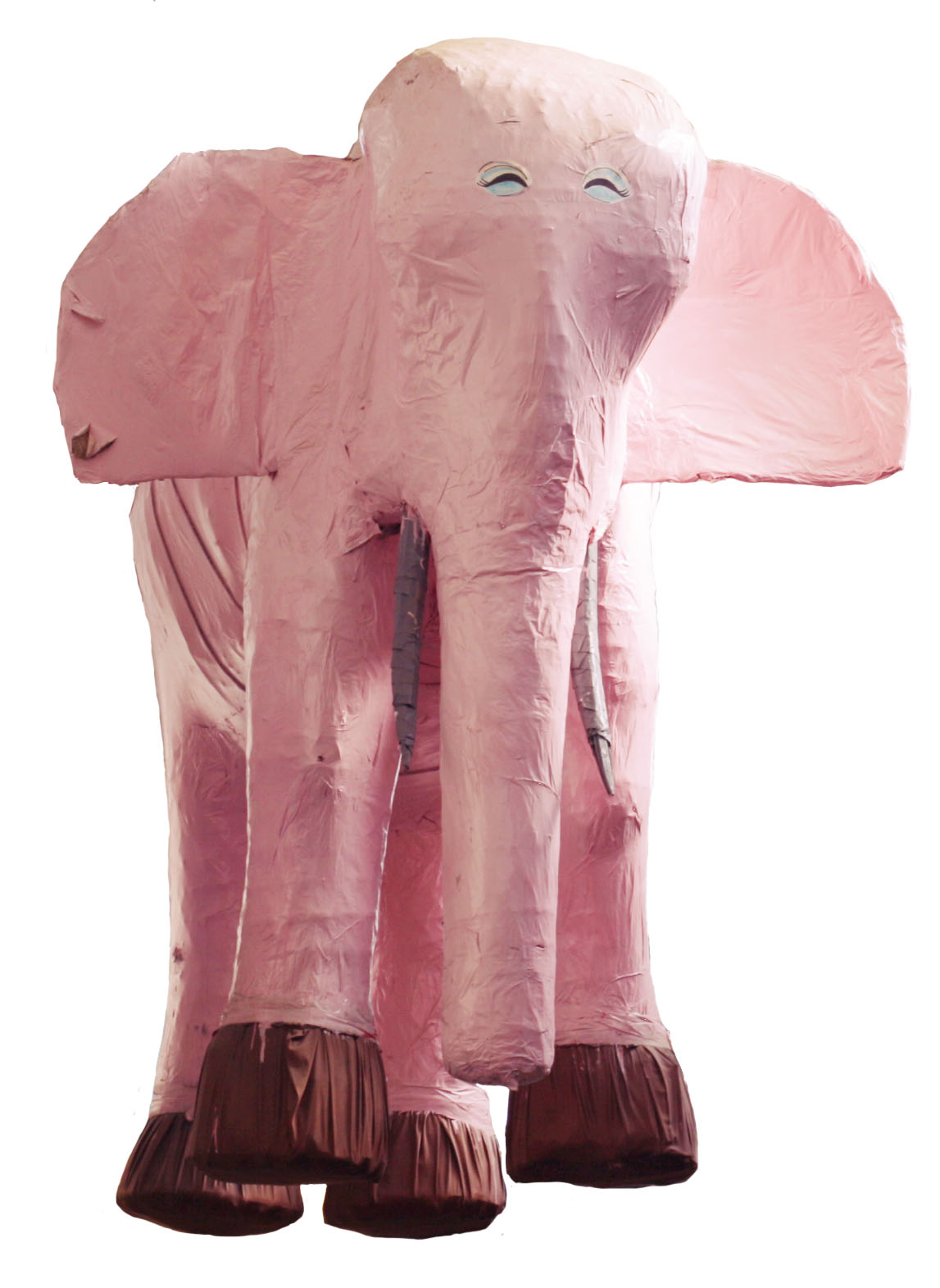 西荻窪の商店街に約30年ぶらさがっていたピンクの象。廃棄寸前の先代(上写真)を保管し、昨年9月佐渡に移送したというのは、これまでこのHPでなんども報告してきたとおり。今回の展示では、佐渡に行った経過の報告のほか、その後の佐渡での活躍、また先日おこなったピンクの象の紙はがしの様子の最新レポなどを、写真のほか、和久井幸一さん撮影の最新映像でお届けします(常時上映)。