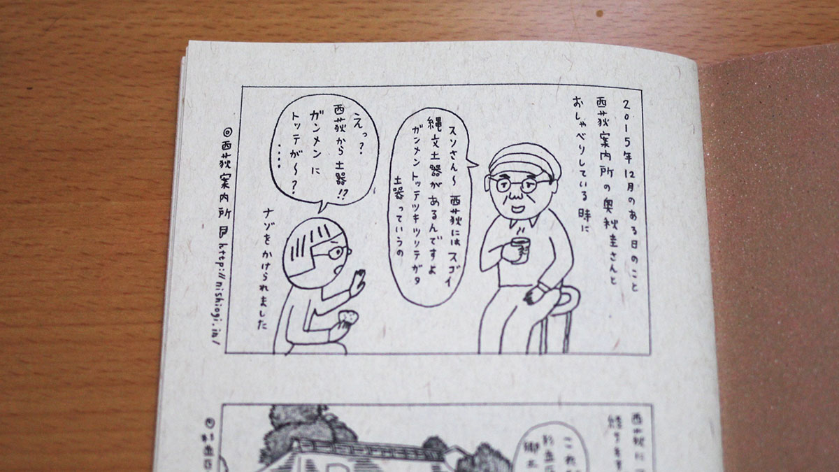 前にスソアキコさんと行った「西荻縄文ツアー」(←ツアー報告あり)では、西荻窪エリア(上井草含む)の遺跡地をまわったあと、井草八幡宮の文華殿を特別に開けてもらいました。その様子はその後、スソアキコさんによる冊子「西荻縄文(プレ)ツアー」にまとめられています。