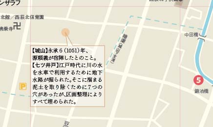 昨年11月に実施した「西荻ドブエンナーレ」のトピックも少しずつ織り込んでいます。たとえば暗渠。松庵川暗渠は前回に引き続き、今回新たに、善福寺川・城山下支流をこそっと追加。