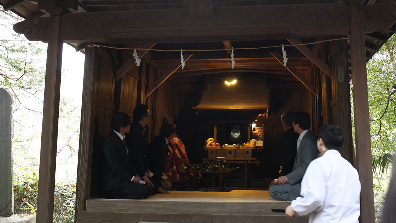 例大祭といっても縁日屋台があるわけでもなく、神職の方が祝詞を唱え、地域の方が榊を供えるくらいの簡素な儀式です。