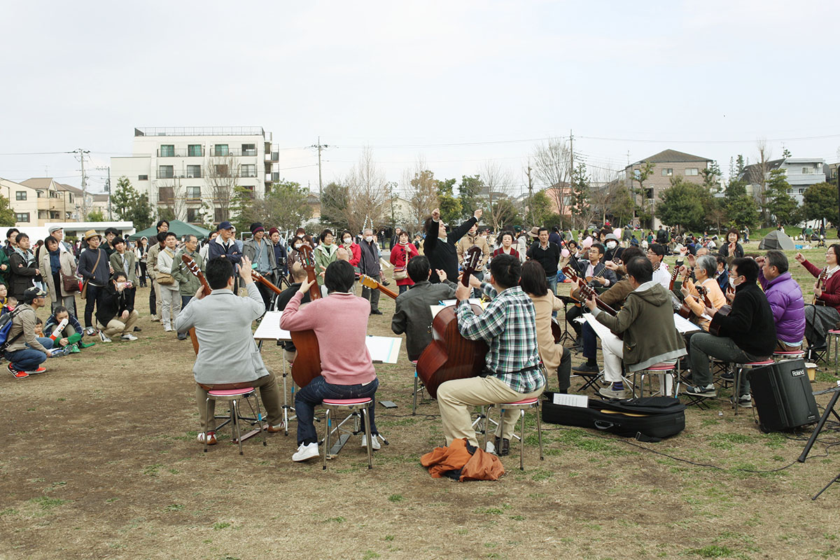 南口の新堀ギター。第1回のフェスの時は合奏団で演奏してもらったのでした。今回は体験レッスンコーナーのほか、特別演奏もありとのこと。春の空にしみるんだよなーギターの音が。