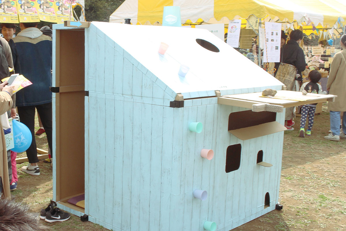 毎年善福寺公園でやっている「トロールの森」も出展。そのおとなりでは、トロールメンバーでもある渡辺さん一家が、Cacapoというダンボールハウスを出展。頑丈さもさることながら、小屋って楽しい! キット販売はこれかららしいです。