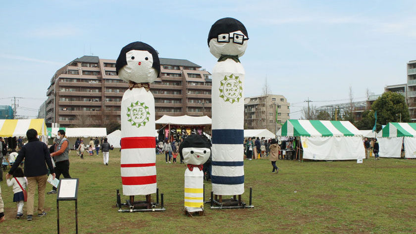 会場には毎度おなじみ、こけしのモニュメント。初年はおかっぱこけし1体だったのが、2年目にメガネの彼氏ができて、3年目にはちびっこいやつが生まれてました。3年越しのプロジェクトがついに完結。