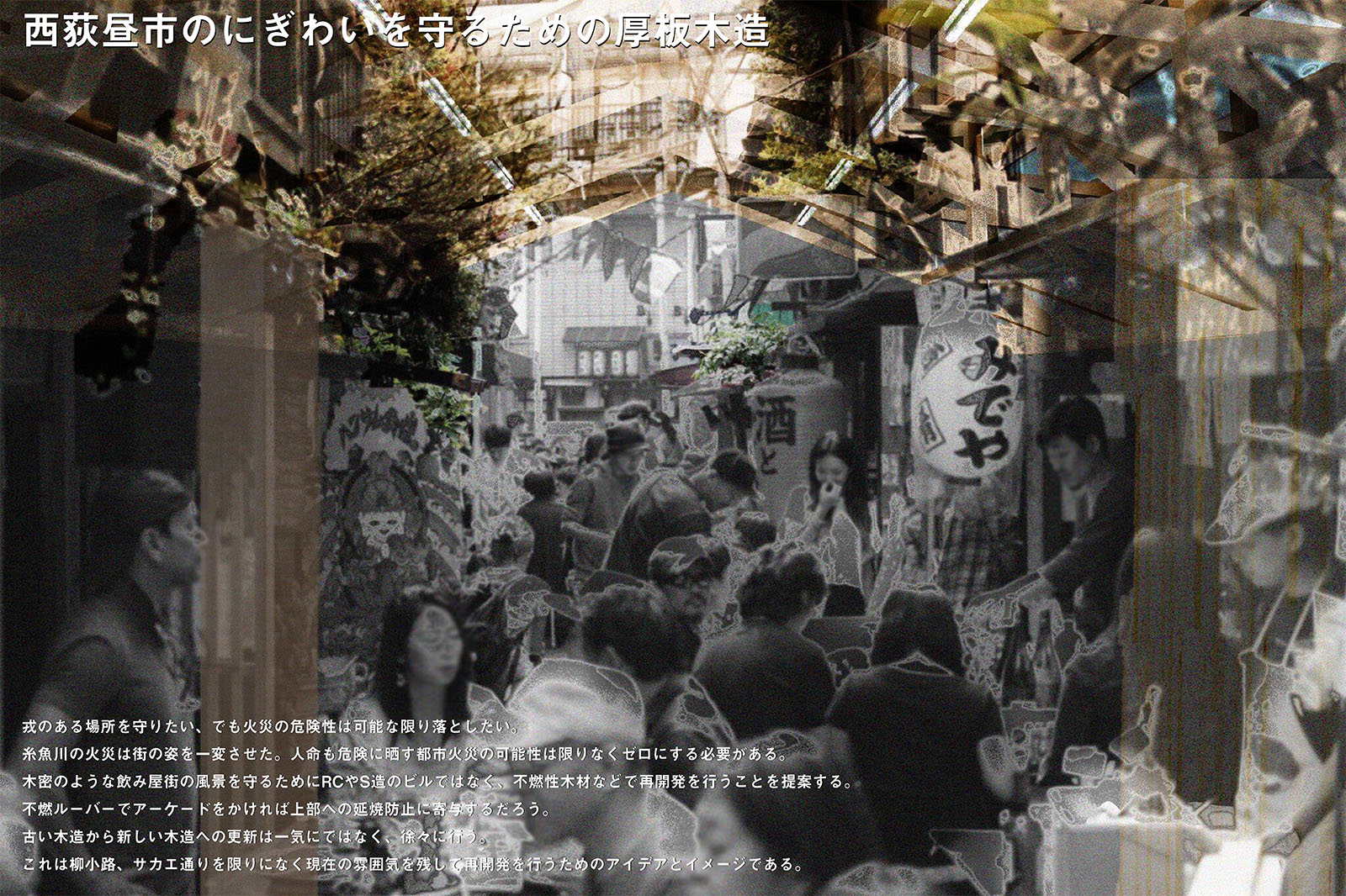 案2: 西荻昼市のにぎわいを守るための厚板木造