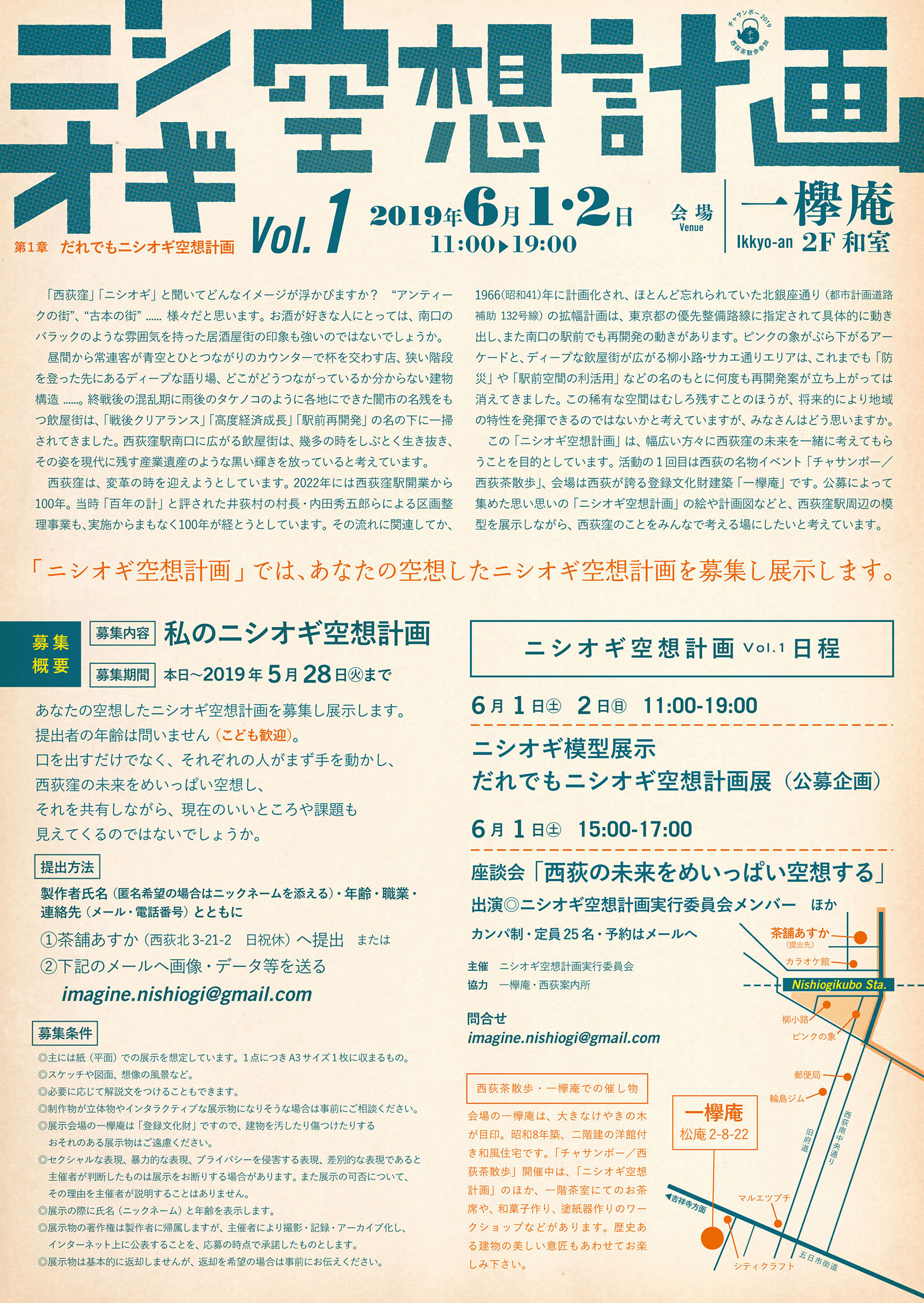 ただいま絶賛募集中の「ニシオギ空想計画 Vol.1」。かいつまんで説明すると、子どもから大人までが、それぞれ空想した西荻の未来イメージを出しあってブレインストーミングをすることで、現在の西荻のいいところ/わるいところを見直し共有するのがまず最初の目的です。(詳細は上の青文字からリンク先にあります)
