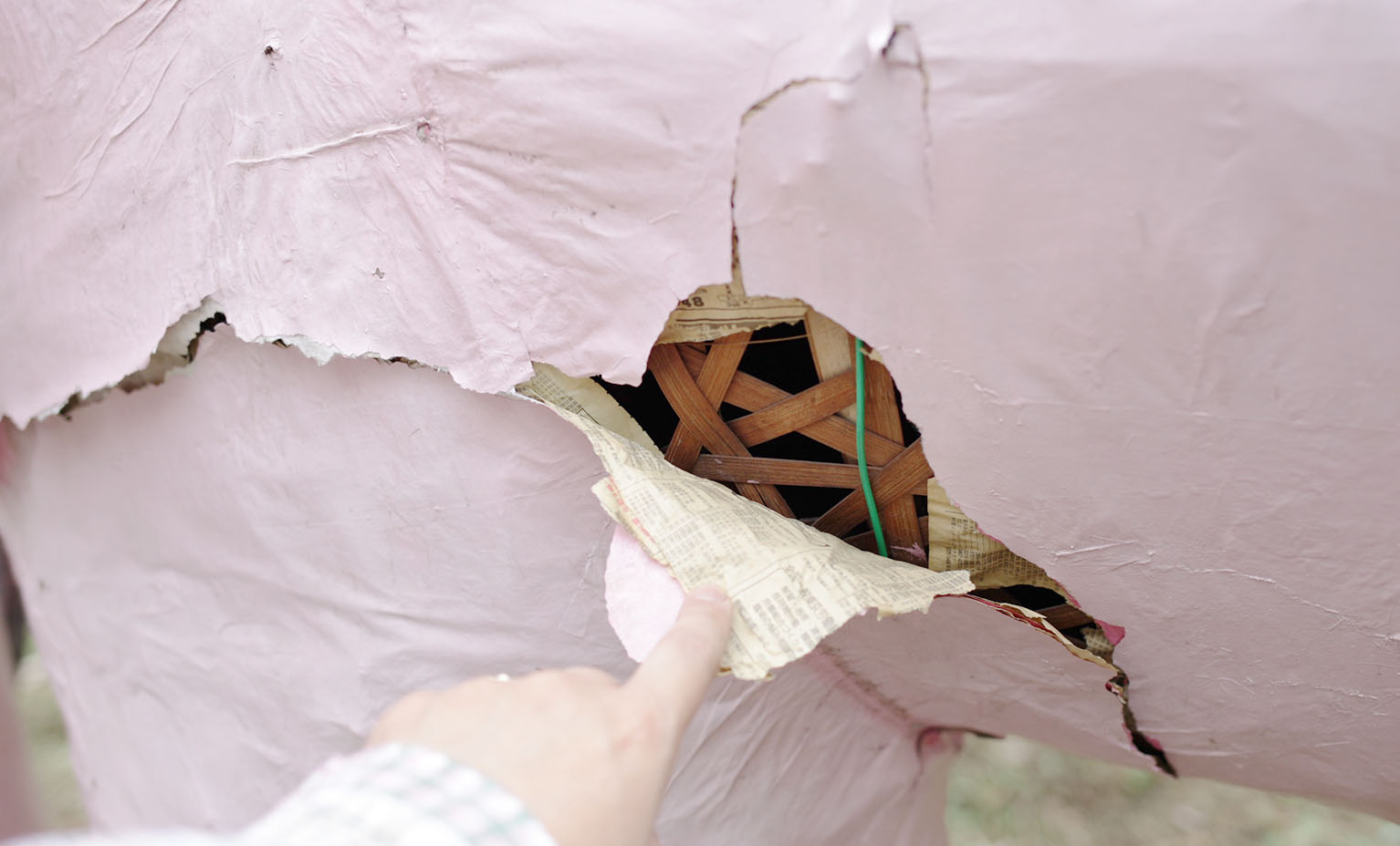 大型の造作物は、使用が終わったあと保管がされる機会は多くありません。そのなかで西荻のピンクの象は、竹細工には珍しい超長期運用だったのです。二代目象の製作年代は平成元年ころと思われますので、こういった造作物が竹細工から新素材や発泡スチロールに変わっていく時期にあたっていたようです。