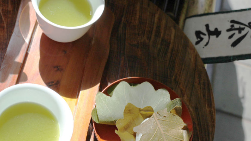 端午の節句といえば柏餅です。そして新茶の季節。さわやかなお茶の味とあんこのマッチング、至福のひととき。