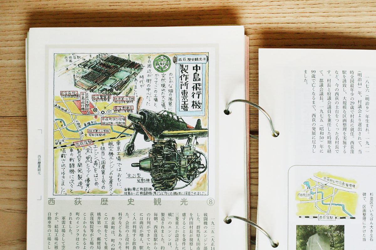お店についてはこのガイドを利用する人が各自、補足していけばいいのです。『Nishiogi Lovers’ Book』もそうですが、人それぞれの西荻があるわけで、そういう意味でいったら人の数だけのガイドブックができることになる。それを見越して、あえて「本」にせず、リングでまとめたリフィール式になっています。持ち主は自分にとって必要な情報を増補していくことで、自分の『西荻観光手帖』を育てていくことになります。こちらが提供するものはあくまでベースの部分。つまり西荻にとってゆらぎないもの、西荻の地面に染み込んだ風土や歴史といったものをまずしっかり紹介していこうということになりました。