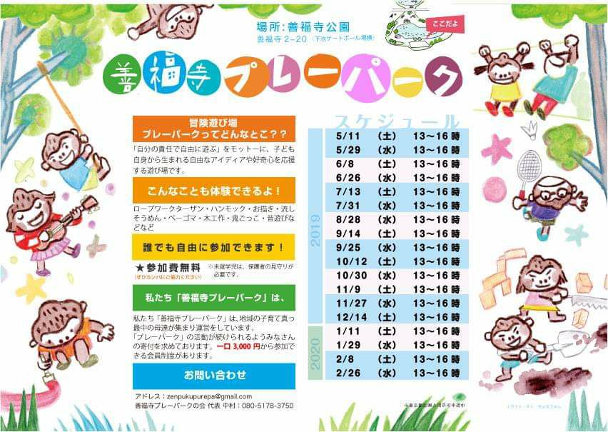 さて、今後の善福寺プレーパークの予定は、以下の画像を見てくださいね。